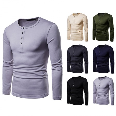 Men's Plus Size Plus Velvet Warm Henley Collar Long-Sleeved T-Shirt Bottoming Shirt