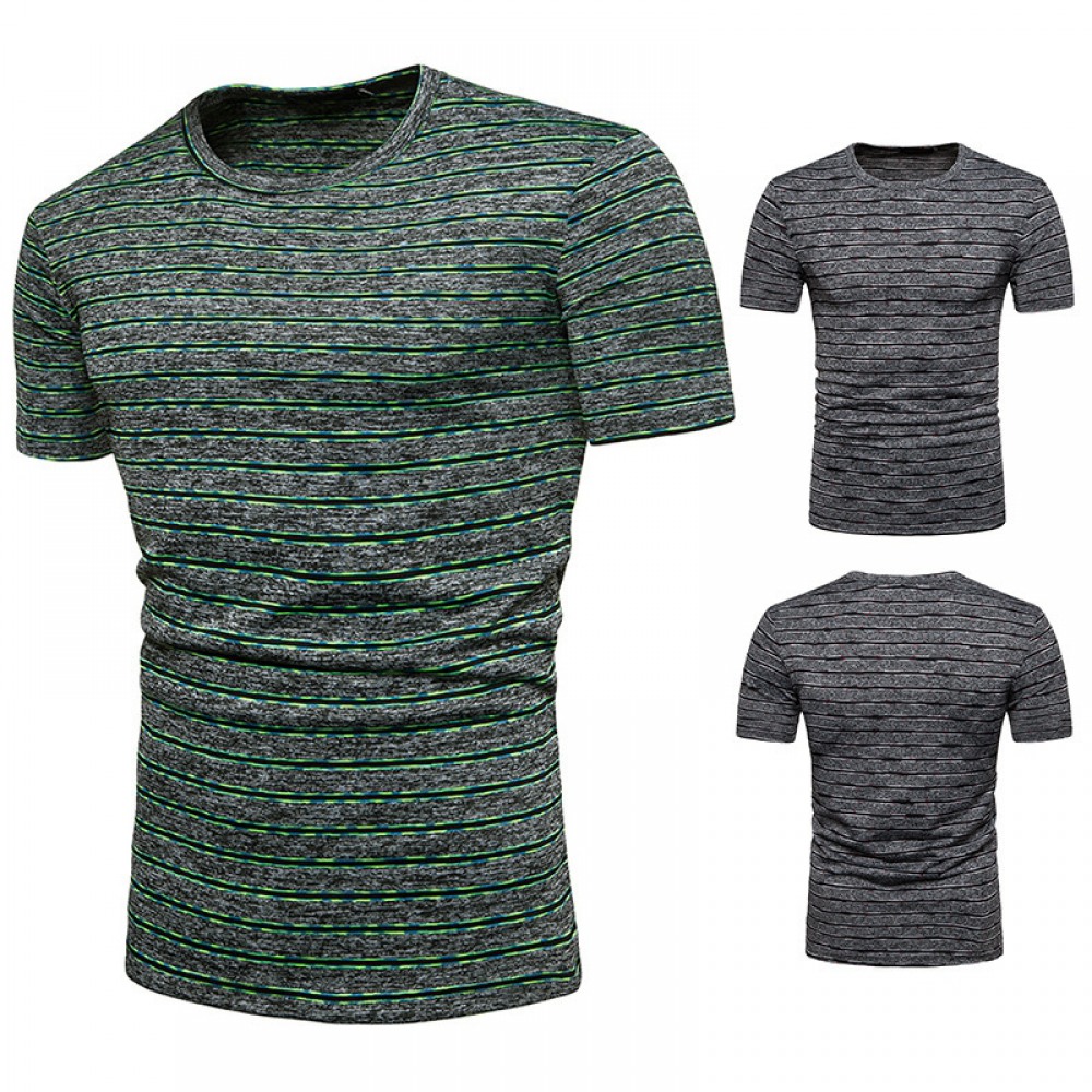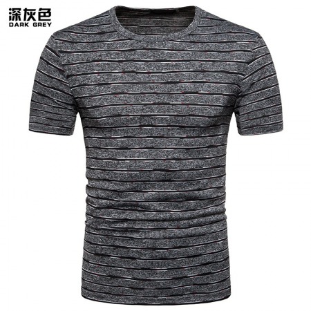 New Summer Men's Short-Sleeved T-Shirt Contrast Striped Slim Casual T-Shirt