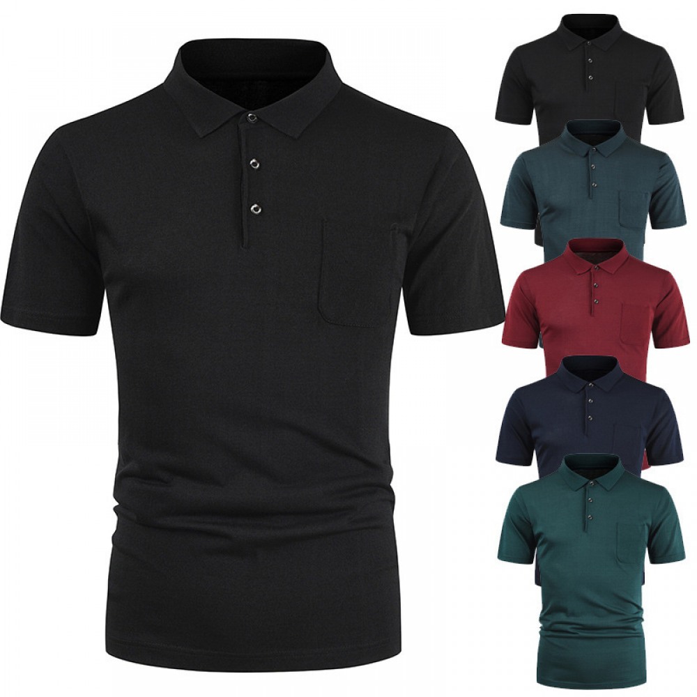 New Summer Men's Casual Fashion Pullover T-Shirt Youth Solid Color Plus Size Pocket T-Shirt