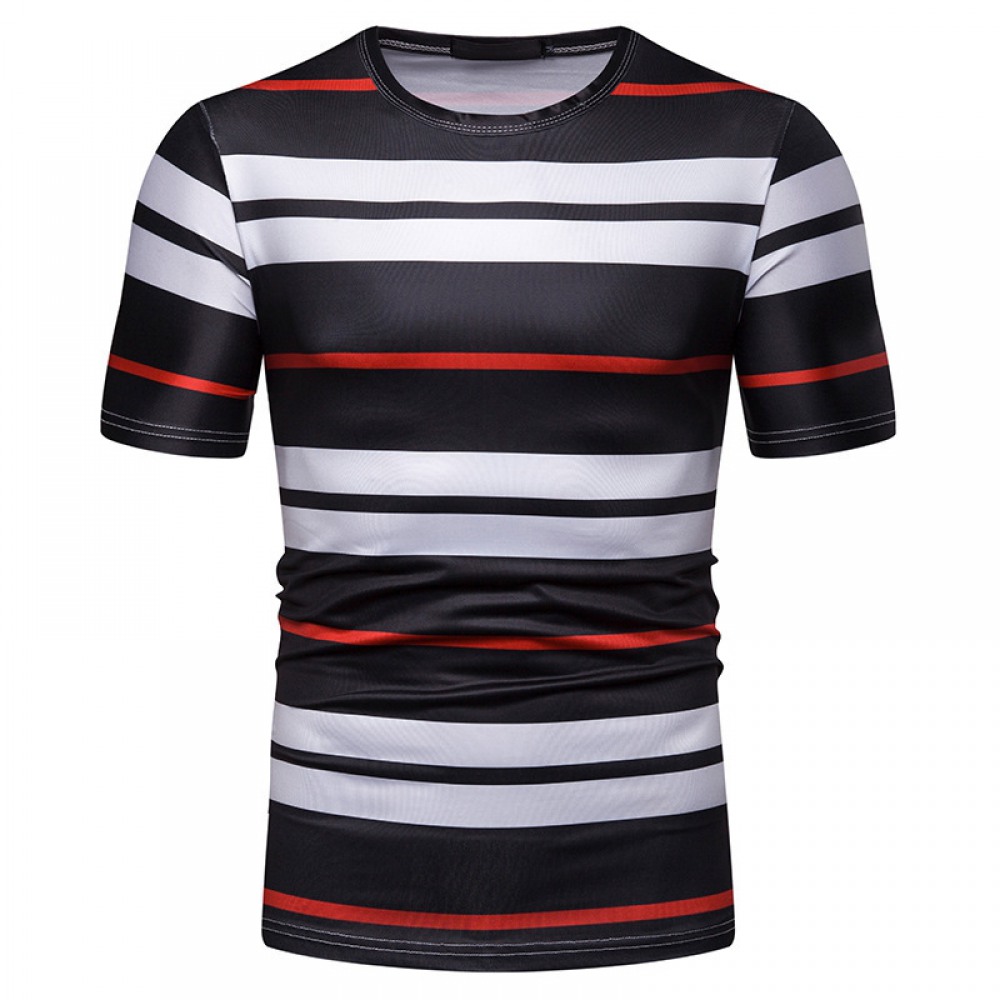 New Summer Men's Short-Sleeved T-Shirt Contrast Striped Slim Casual T-Shirt