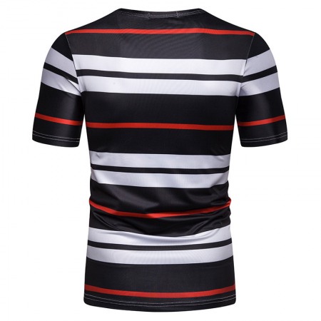 Men's Short-Sleeved T-Shirt Contrast Striped Slim Casual T-Shirt