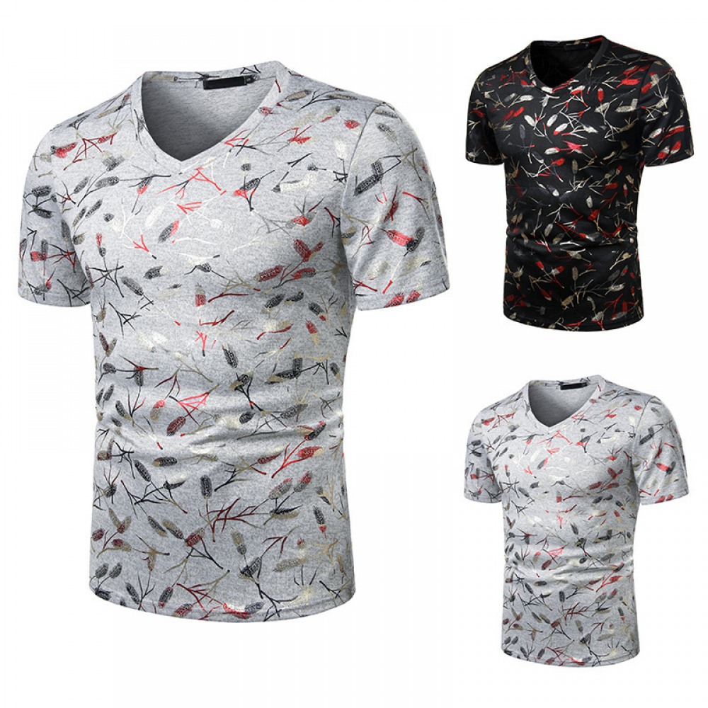 Men's Short-Sleeved T-Shirt V-Neck Printing Stock