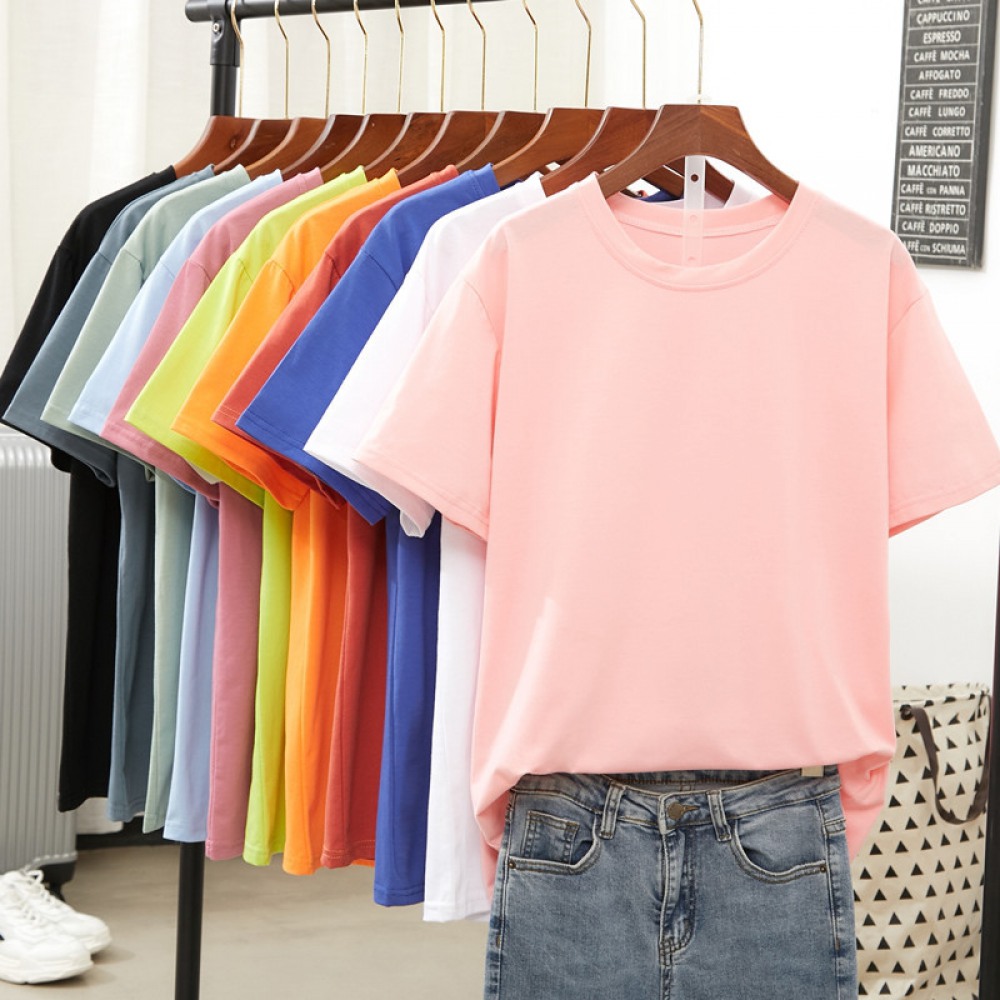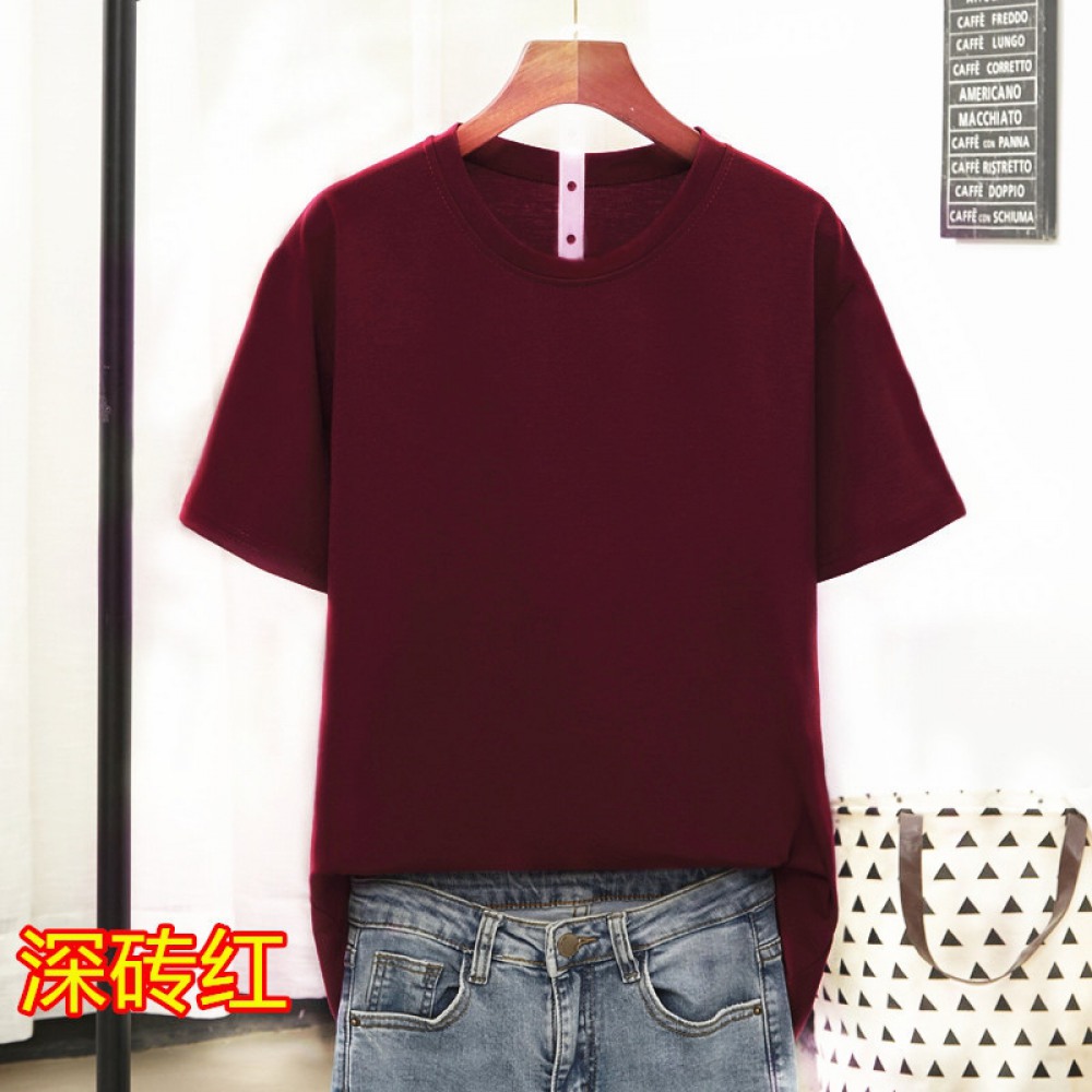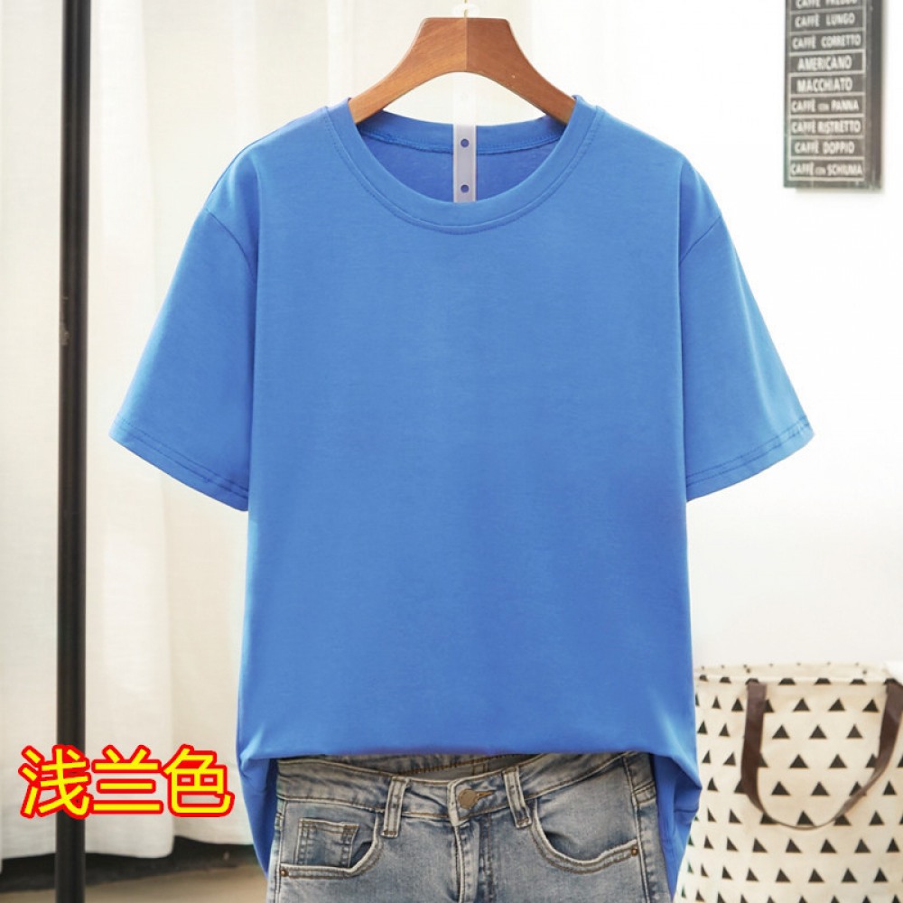 Summer Round Neck Short-Sleeved T-Shirt Couple Loose Version Solid Color Combed Cotton