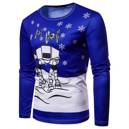 3D Personality Printing Fashion Men's Christmas Robot Pattern Long-Sleeved T-Shirt