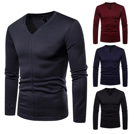 Men's Plus Size Plus Velvet Warm V-Neck Long-Sleeved T-Shirt Base Shirt