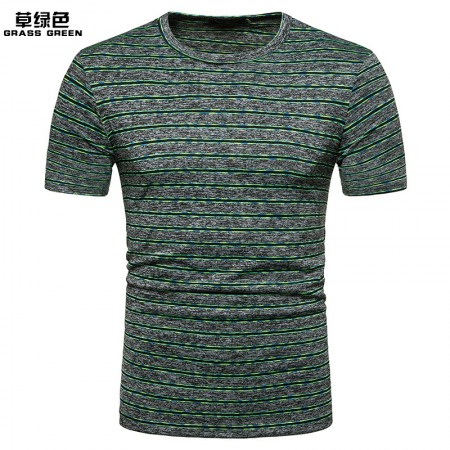New Summer Men's Short-Sleeved T-Shirt Contrast Striped Slim Casual T-Shirt