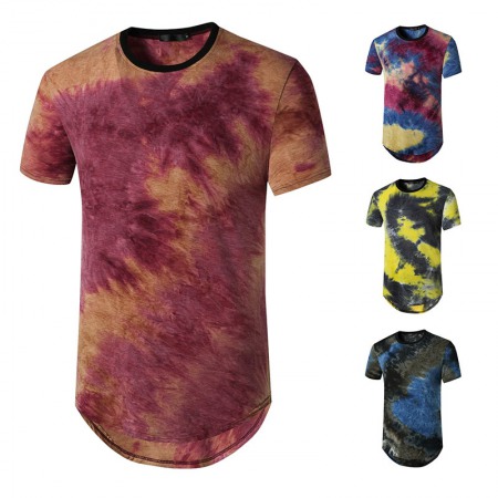 New Men's Plus Size Gradient Short-Sleeved Hipster Hip-Hop T-Shirt