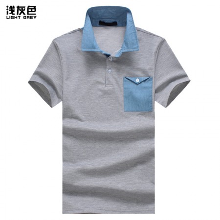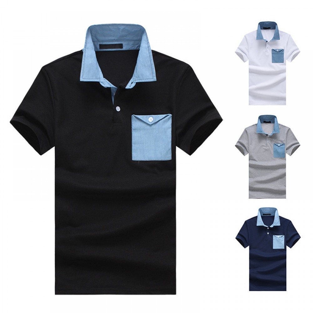 New Style Tiling Fashion Denim Stitching Men's Lapel Short Sleeve Polo