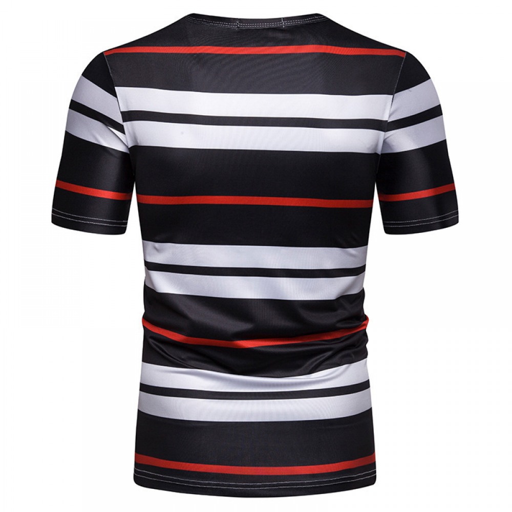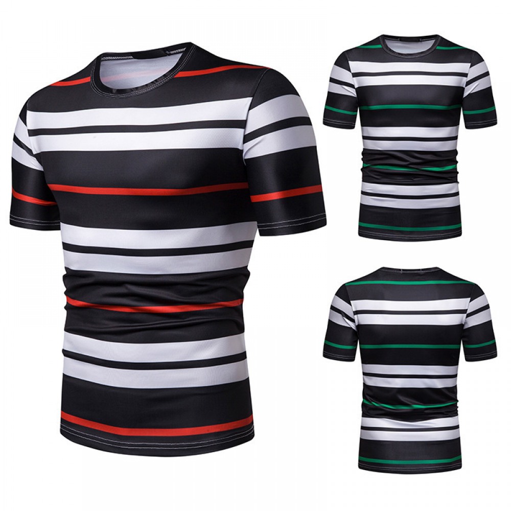 New Summer Men's Short-Sleeved T-Shirt Contrast Striped Slim Casual T-Shirt